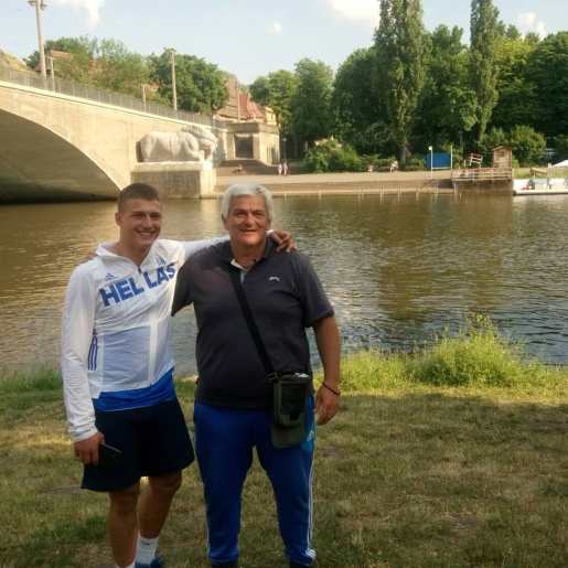 Στη φώτο ο Χρήστος Φραντζεσκακης μαζί τον προπονητή του Κωστή Παπαμαρκάκη στο Halle, Saxony-Anhalt.