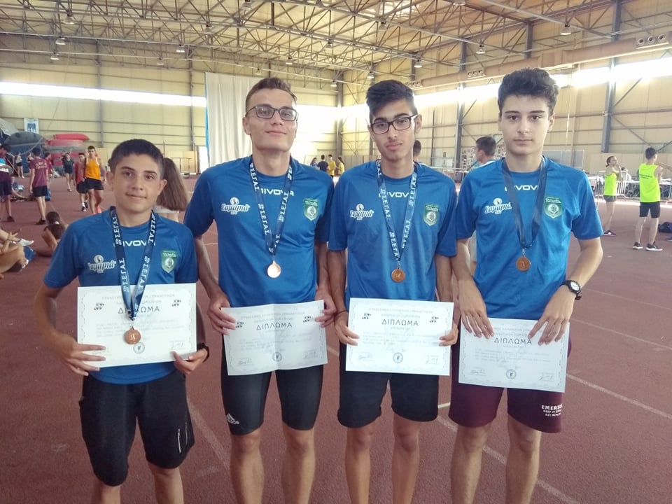 Η ομάδα 4Χ80μ αγοριών χάλκινο μετάλλιο με τους Μήλιο – Καλανδράνη – Μαλιχούτη – Κλέτσα με 37.61