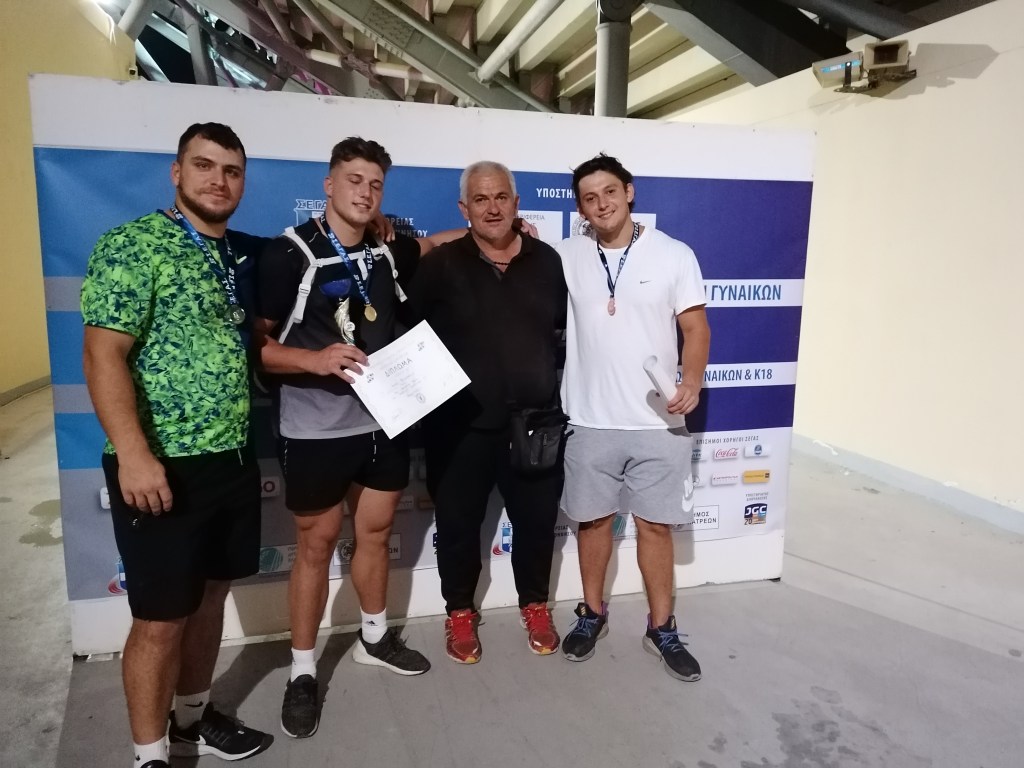 Ο Μιχάλης Αναστασάκης 2ος ο Χρήστος Φραντζεσκάκης 1ος ο κόουτς Παπαμαρκάκης και ο Ιβάν Μεγκλεμπέη μέλος του γκρούπ που ανήκει στον Ολυμπιακό μετά τον καλύτερο τελικό της σφυροβολίας των τελευταίων ετών