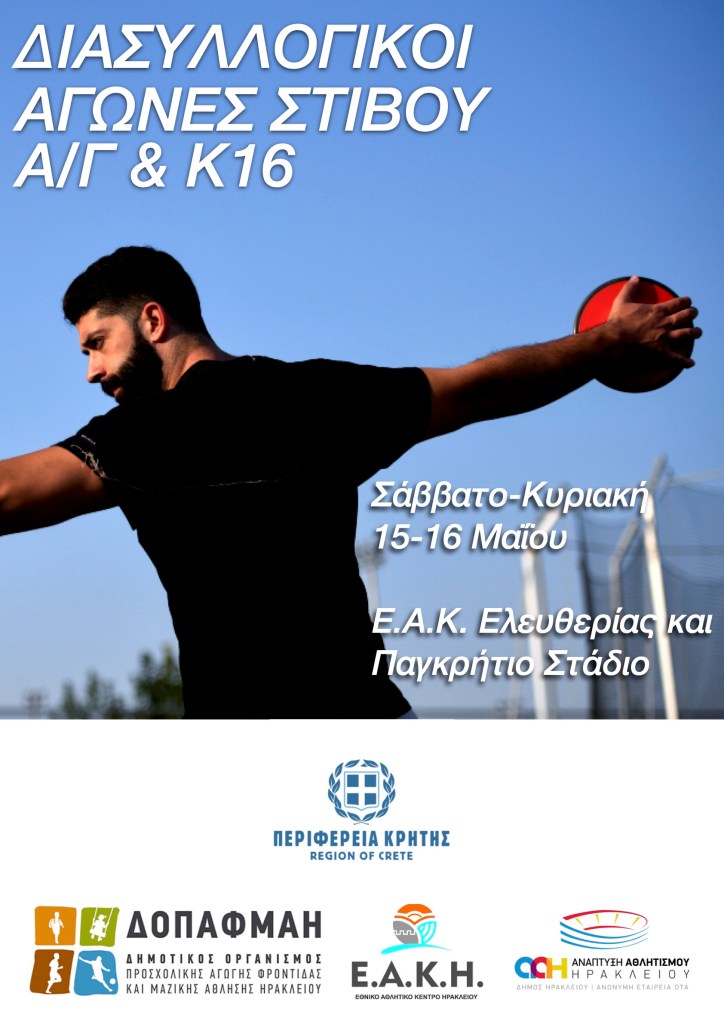 Η Ε.Α.Σ. Σ.Ε.Γ.Α.Σ. Κρήτης με την υποστήριξη της Περιφέρειας Κρήτης – Περιφερειακές Ενότητες Χανίων, Ρεθύμνης, Ηρακλείου, Λασιθίου, της Δημοτι-κής Επιχείρησης Ανάπτυξης Αθλητισμού Ηρακλείου, του ΔΟΠΑΦΜΑΗ και των Ε.Α.Κ. Ηρακλείου και Χανίων, διοργανώνει τους Διασυλλογικούς Αγώνες Κ16 (Αγοριών – Κοριτσιών), σύμφωνα με την κεντρική προκήρυξη του Σ.Ε.Γ.Α.Σ. με αριθ. πρωτ. 1448/26-4-2021.