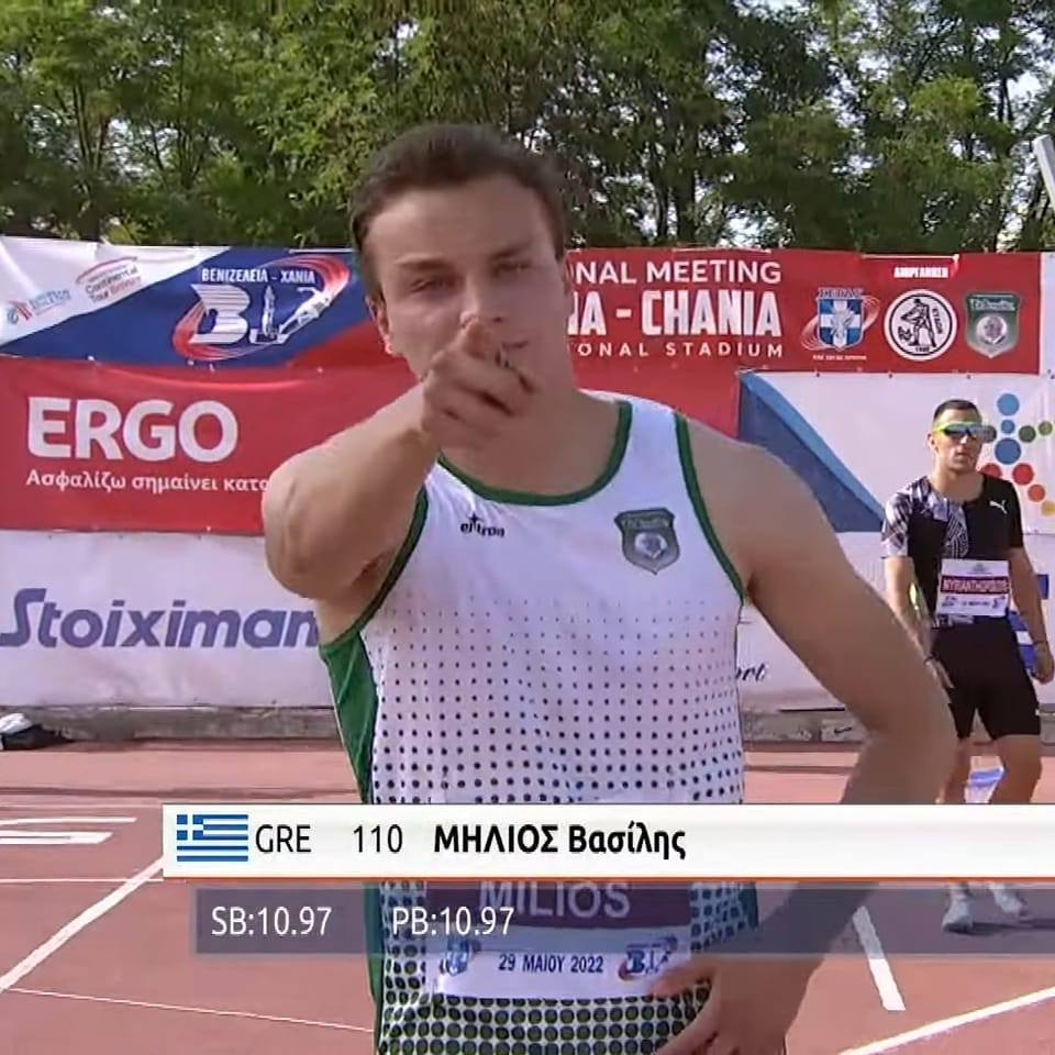 100 μ .: Βασίλης Μήλιος (ΓΣ Ελευθέριος Βενιζέλος)