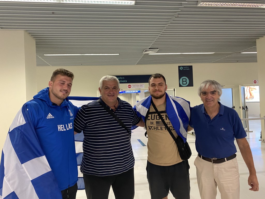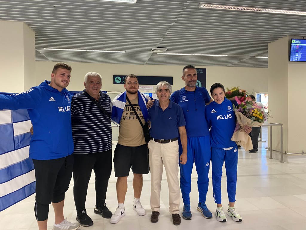 Με την πτήση Α3344 της Aegean Airlines έφτασαν στα Χανιά το βράδυ της Κυριακής 21/8 με ώρα άφιξης 23.25 ο 6ος στην Ευρώπη στην σφυροβολία, Χρήστος Φραντζεσκάκης με τον προπονητή του Κώστα Παπαμαρκάκη αλλά και τον συναθλητή του Μιχάλη Αναστασάκη που δεν κατάφερε να βρεθει στον τελικό εξαιτίας του τραυματισού που τον ταλαιπωρεί. Στο αεροδρόμιο τους υποδέχτηκαν μέλη του ΔΣ του συλλόγου με επικεφαλής τον ΓΓ του ΣΕΓΑΣ Γιώργο Γιατρουδάκη, συγγενείς και φίλοι.