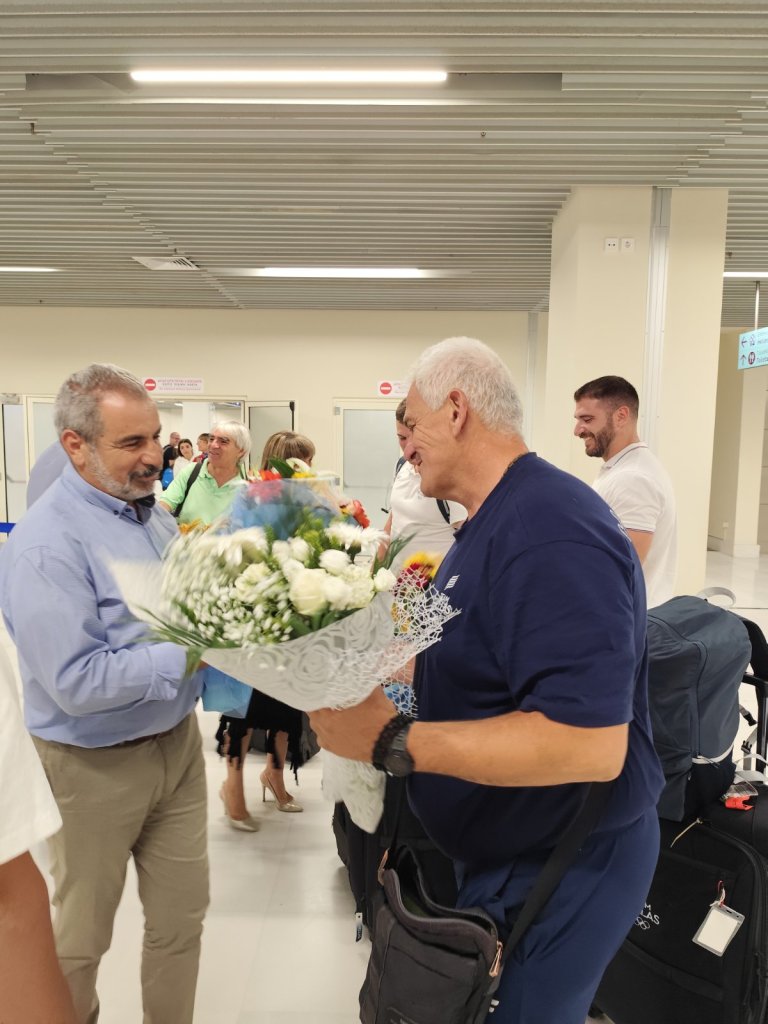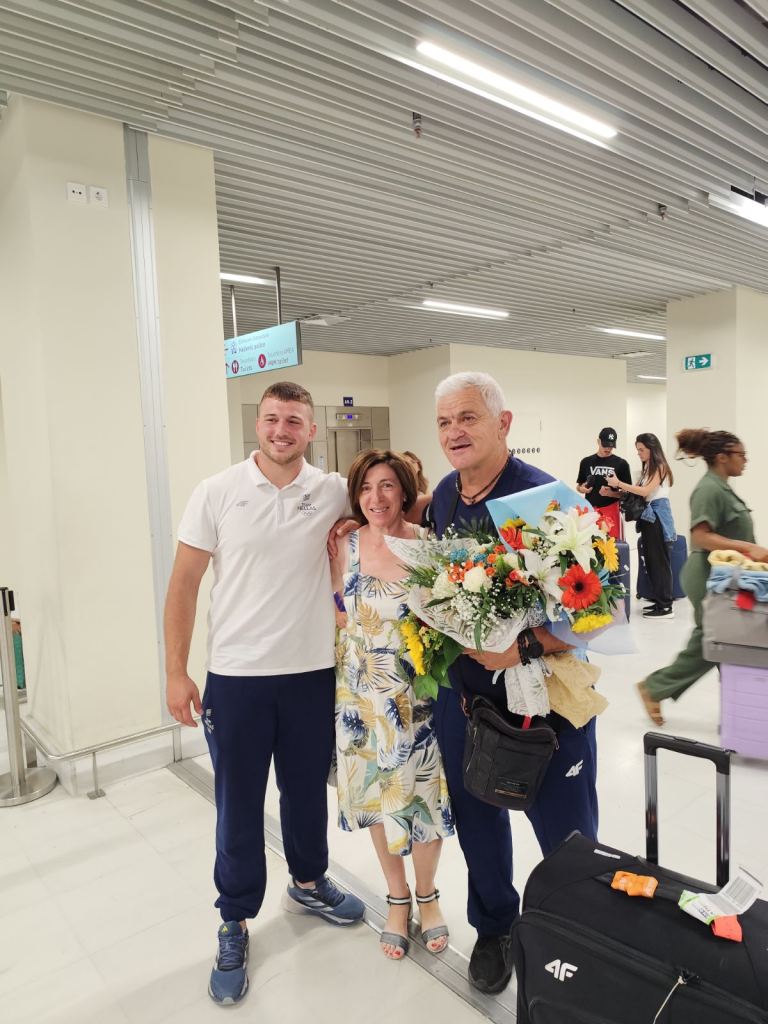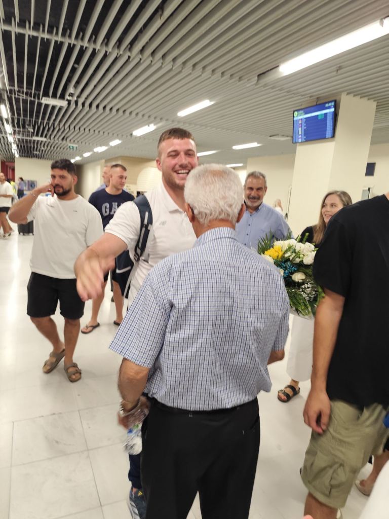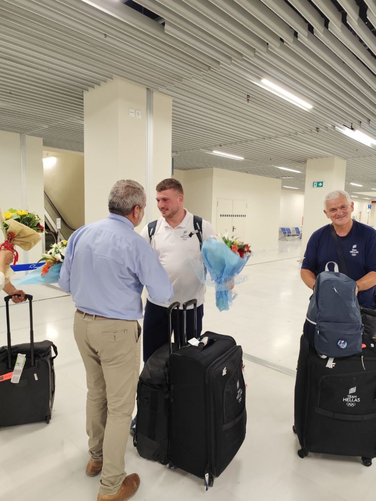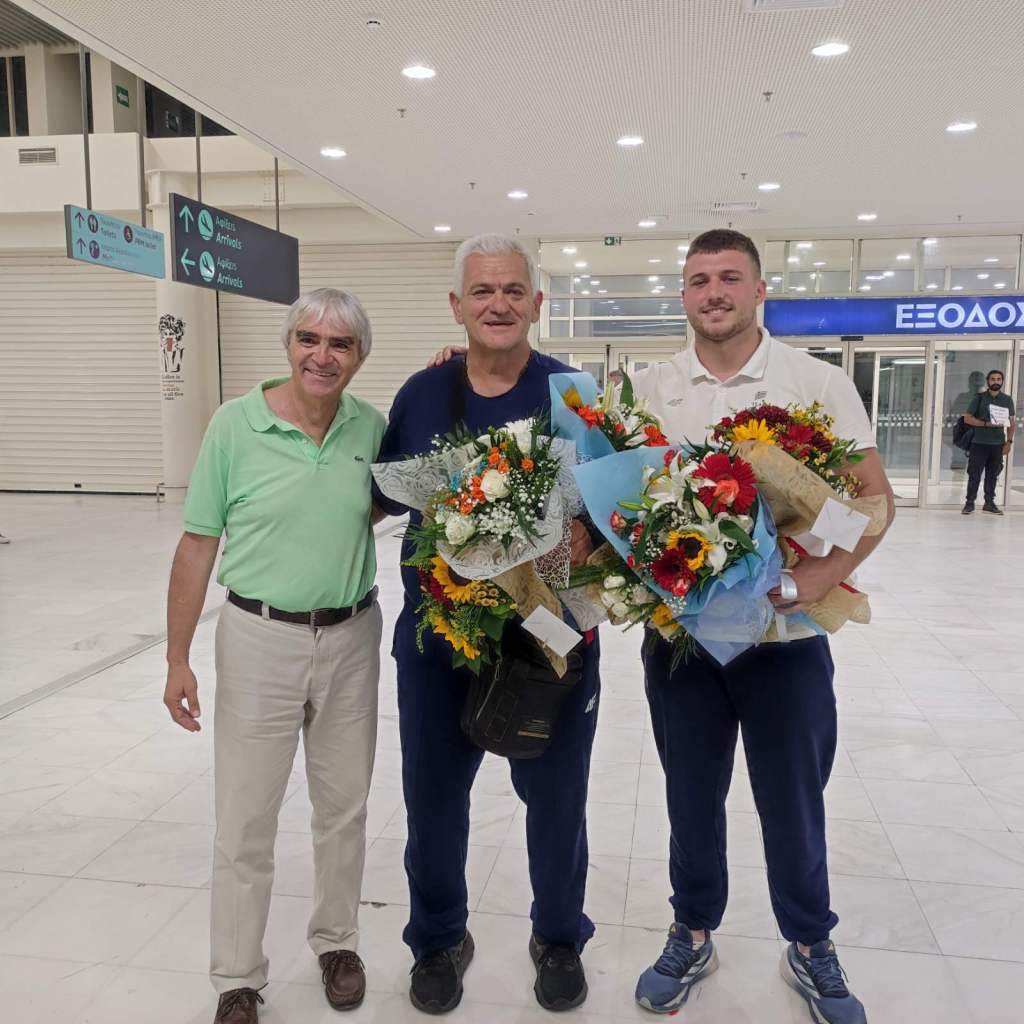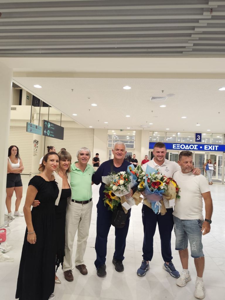 Μετά τις 00:30 έφτασαν στο Αεροδρόμιο Χανίων ο 12ος Ολυμπιονίκης στη Σφυροβολία Χρήστος Φραντζεσκάκης και ο προπονητής του Κωστής Παπαμαρκάκης όπου παλιοί και νέοι αθλητές του Συλλόγου, αγαπημένοι τους φίλοι, μέλη του ΔΣ του Συλλόγου και εκπρόσωποι φορέων τους προετοίμασαν θερμή υποδοχή παρά το προχωρημένο της ώρας.