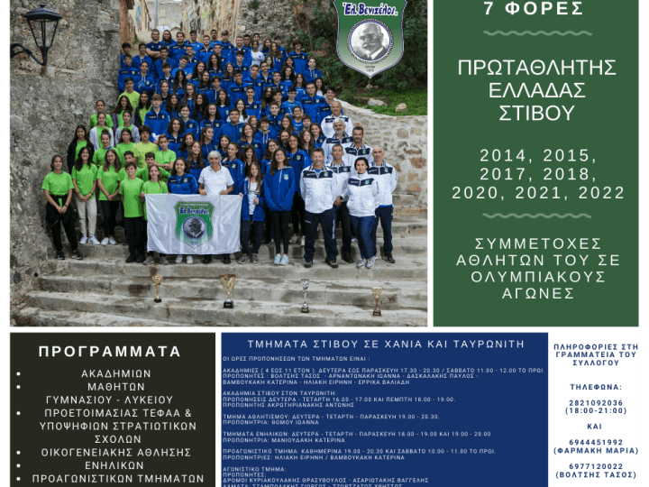 Athletics Κορυφαίος σύλλογος στην Ελλάδα ο Γ.Σ. Ελ. Βενιζέλος για το 2022. by Theodoros Mathioudakis Posted on January 24, 2023January 24, 2023